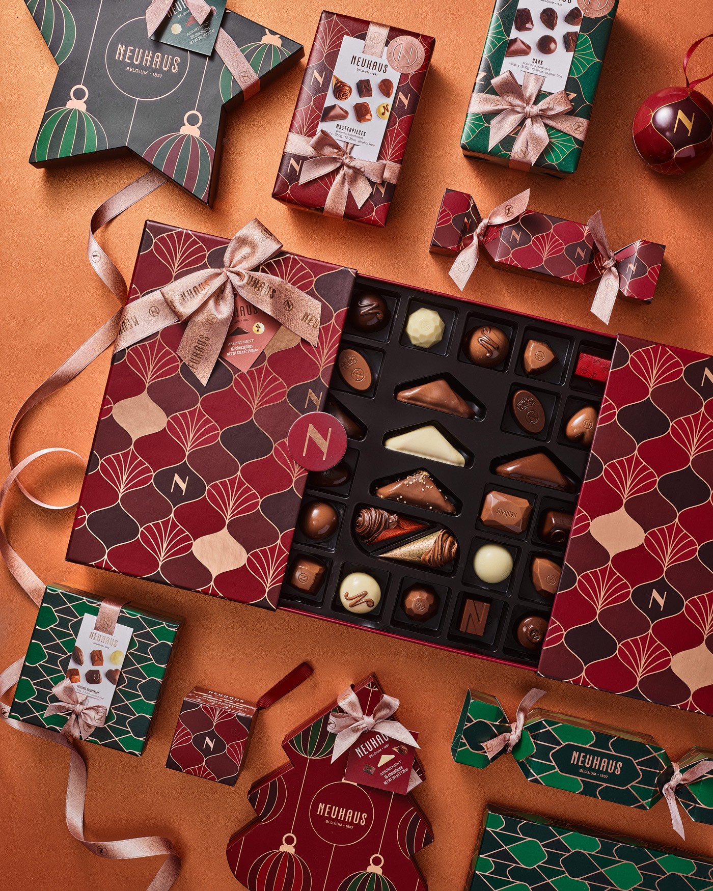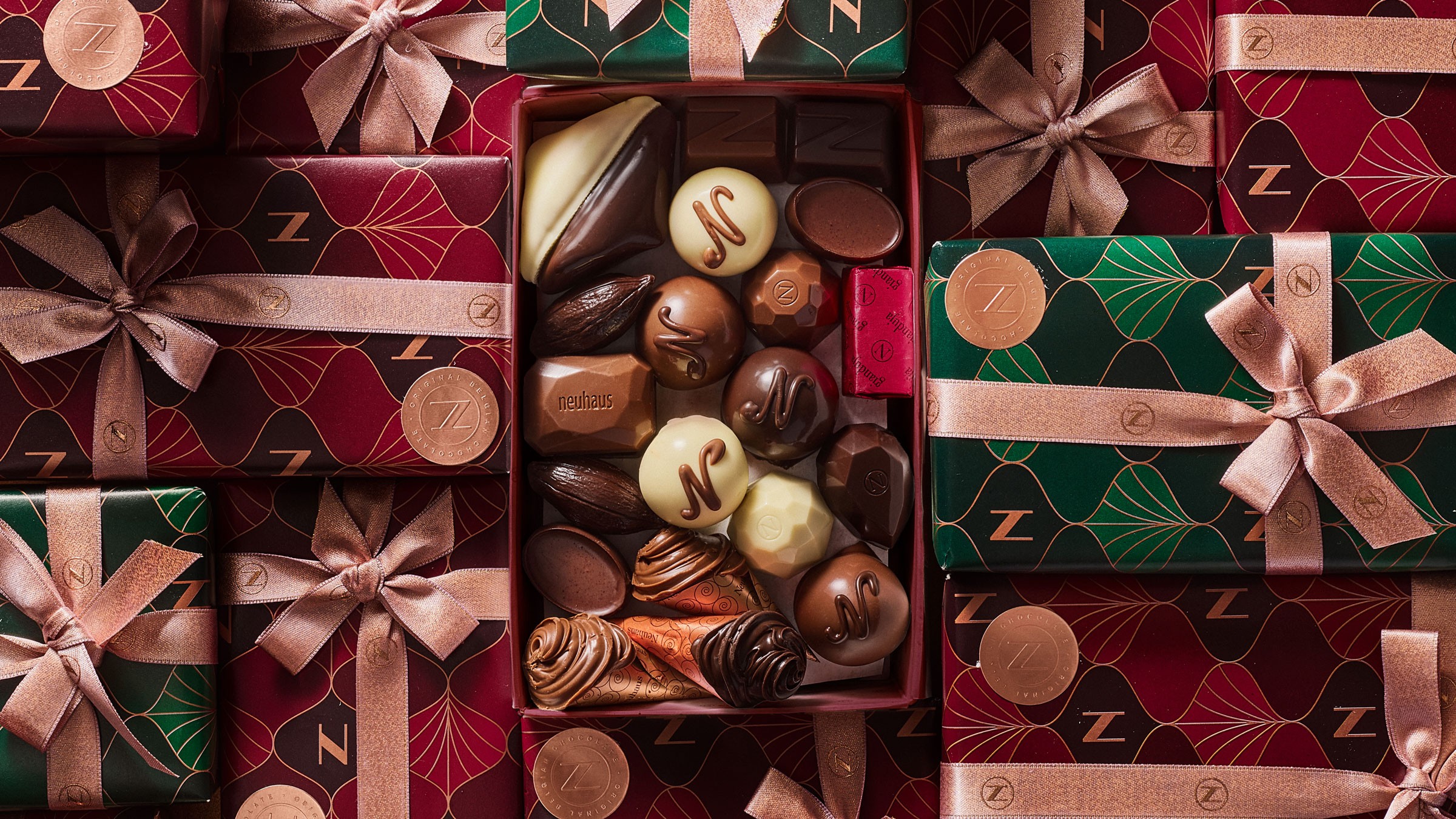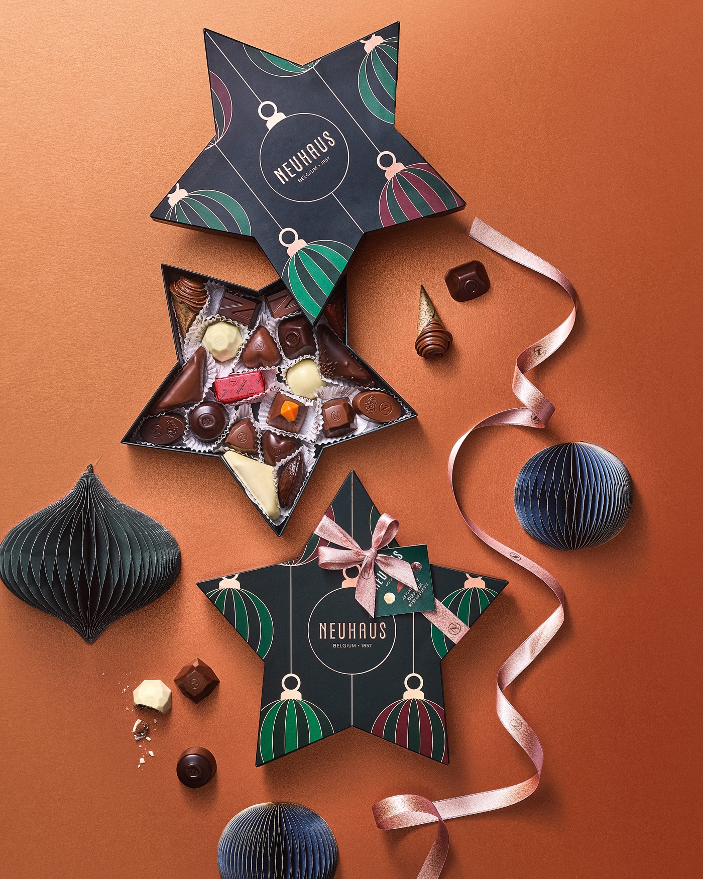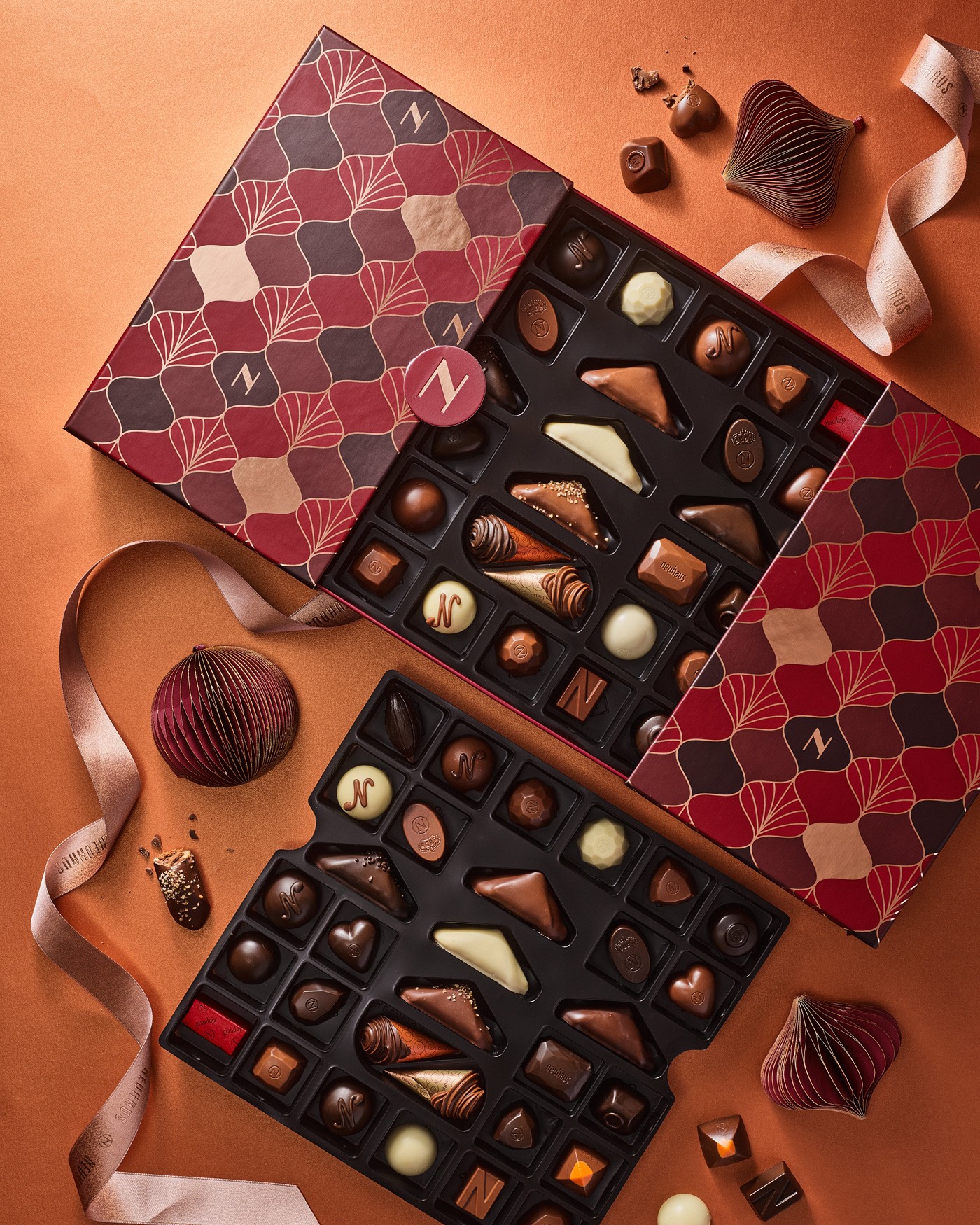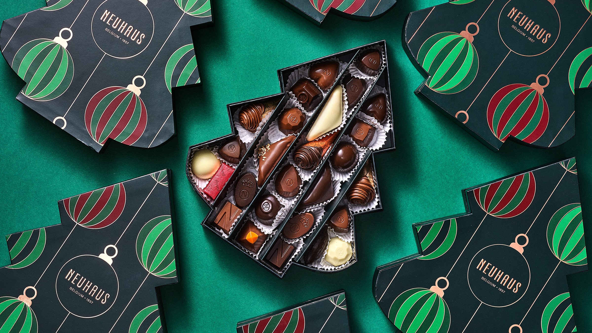 During my time at WeWantMore I had the opportunity to design the Christmas Collection for Neuhaus, the legendary inventor of the Belgian praline. Under the direction of Vicki Nevejans, we developed a collection centered on "The Art of Gifting". Inspired by the Art Deco movement and the tactile joy of high-end wrapping paper, the packaging transforms chocolate boxes into glamorous presents. The result is a collection that feels less like a product and more like a playful set of gifts waiting to be discovered under the Christmas tree.